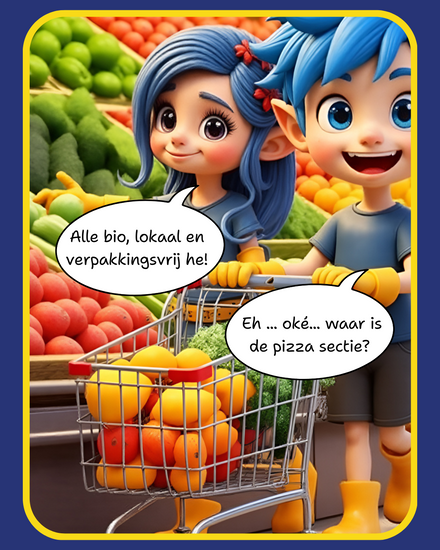 Wat begint als een romantisch uitje… eindigt tussen de diepvriespizza’s, bio groenten en een klein conflict aan het waterrek 😅